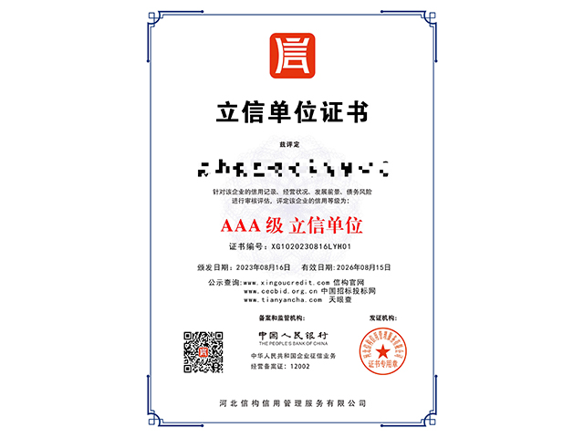AAA級立信單位認證是對企業(yè)信用狀況的高度認可,表明該企業(yè)具有極高的信用度和良好的還···
