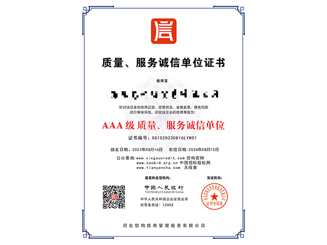 AAA級質(zhì)量、服務誠信單位認證是企業(yè)在質(zhì)量、服務和誠信方面的最高認可,對企業(yè)具有重要···